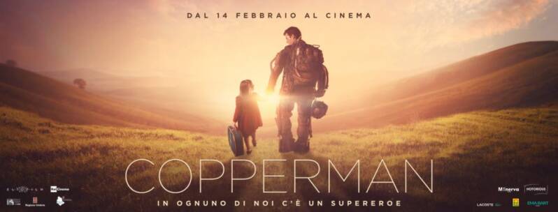 I super eroi hanno trovato una nuova giovinezza al cinema con il miglioramento delle tecniche di grafica digitale e con i costi più accessibili per ingaggiare artisti specializzati pronti a dar vita alle imprese. Quasi tutti i super eroi sono americani, oggi sono di qualsiasi aspetto, colore, genere, e ragionano come la maggioranza degli Yankee si attende. E’ difficile immaginare un super eroe all’italiana, e finora i tentativi sono sempre stati poco convincenti, dal canterino Dorellik al dimenticato Ragazzo Invisibile di Salvatores. Lo chiamavano Jeeg Robot è forse stata un’eccezione dal punto di vista di livello artistico, eppure resta sempre un film male esportabile perché radicato nell’esperienza italiana e poco comprensibile all’estero. Abbiamo una tradizione di cinema a sfondo sociale, versato al realismo più che alla fantasia. Anche Copperman, antieroe mascherato nato nel 2019 dalla fantasia di Eros Puglielli, risente di questa vocazione che forse crea personaggi più maturi, e snatura irrimediabilmente il concetto stesso di super uomo. Se l’Uomo Ragno può essere un nerd sfigato però mutante e Hulk può essere un bestione incapace di pensiero razionale ma fortissimo, Copperman è un bambino nel corpo di un adulto. Anselmo ( Luca Argentero), suo alterego umano, è un giovane affetto da un ritardo non troppo grave da essere inabilitante, una sindrome dello spettro autistico. E’ stato cresciuto dalla madre poiché il padre lo ha abbandonato e vive in un non precisato borgo del centro Italia. La donna gli ha fatto credere che l’uomo sia un supereroe allontanatosi dalla famiglia per combattere il male e il piccolo ha superato tanti momenti difficili della sua vita trovando rifugio nei fumetti. Ha continuato a guardare il mondo con occhi innocenti, evitato o bullizzato dai compagni di classe, con una sola amica, Titti, una ragazzina abusata dal padre e presto affidata a un orfanotrofio. Con gli anni Anselmo ha trovato un lavoro in un centro di igiene mentale popolato da un’umanità strampalata e si è fatto costruire un’armatura di rame dal fabbro del paese, Silvano (Tommaso Ragno). Ogni sera lui può trasformarsi in Copperman e fare il super eroe. Un giorno Titti torna…